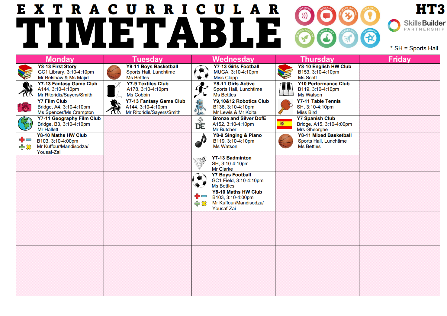 Our Extra Curricular Timetables can be found below...